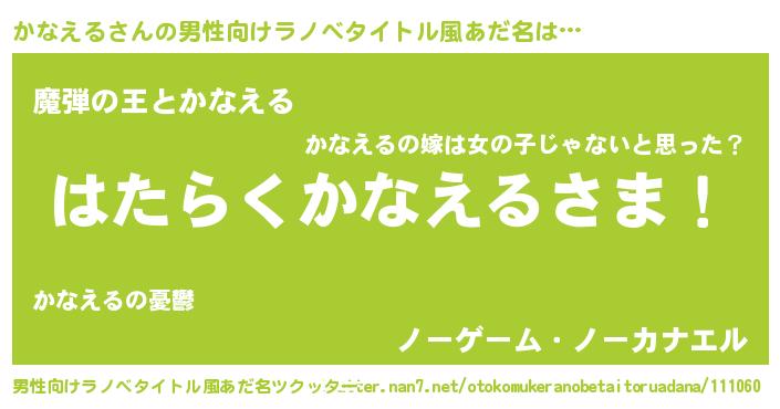 | ヒーロー風カッコイイあだ名 | 『仮面カナダー』『正義の使者かなえる』 |
