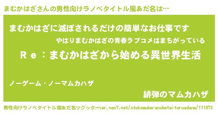 | 女子向けラノベタイトル風あだ名 | 『まむかはざストレイドッグス』 |