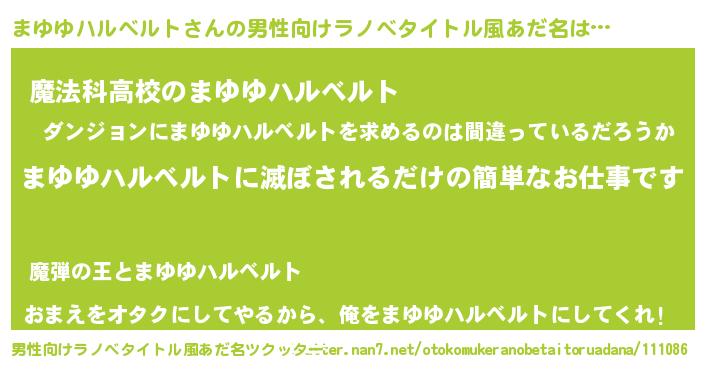 | ヒーロー風カッコイイあだ名 | 『究極戦士マユユハルベルト』 |