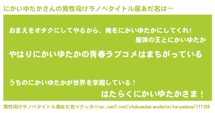 | 欧米人風あだ名 | 『にかいゆたかクリステル』 |