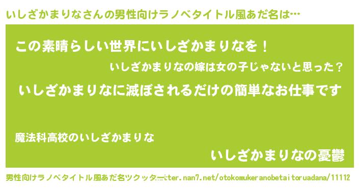 | 意味不明あだ名 | 『住所不定無職いしざかまりな(59歳)』 |
