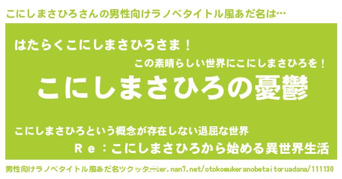 | ヘコむあだ名 | 『こににゅー』『こにしまさひろ(苦笑)』 |