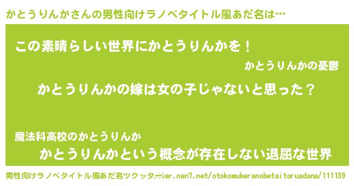 | 女子向けラノベタイトル風あだ名 | 『かとうりんか様がみてる』 |