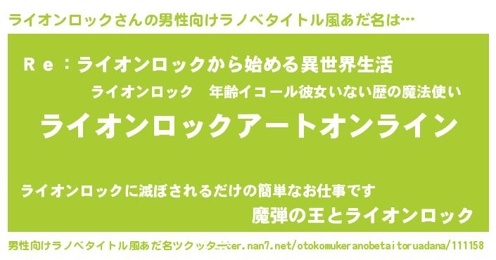 | 女子向けラノベタイトル風あだ名 | 『誰かこのライオンロックを説明してください! ~契約から始まるウェディング~』 |