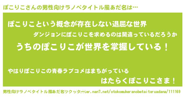 ぽこりこさんの男性向けラノベタイトル風あだ名をツクッター!