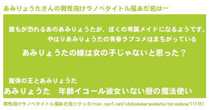 | 女子向けラノベタイトル風あだ名 | 『あみりょうた様がみてる』 |