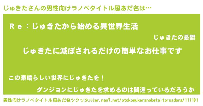 | 女子向けラノベタイトル風あだ名 | 『横柄じゅきたと宰相陛下』 |