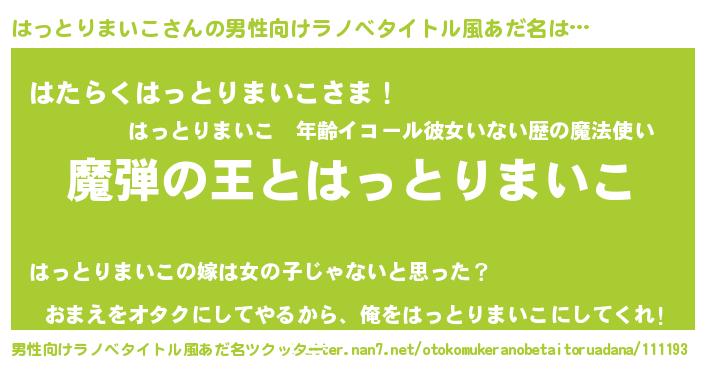 | 意味不明あだ名 | 『住所不定無職はっとりまいこ(5歳)』 |