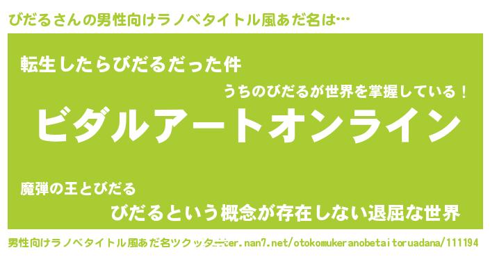 | 女子向けラノベタイトル風あだ名 | 『びだる姫と円卓の騎士』 |