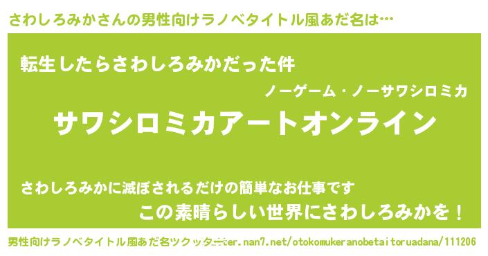 | 女子向けラノベタイトル風あだ名 | 『誰かこのさわしろみかを説明してください! ~契約から始まるウェディング~』 |
