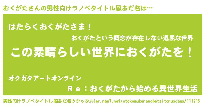 | 意味不明あだ名 | 『住所不定無職おくがた(71歳)』 |