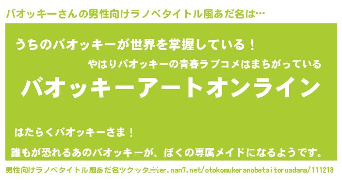 | ヘコむあだ名 | 『バオっふぃ~』『バオッキー(笑)』 |