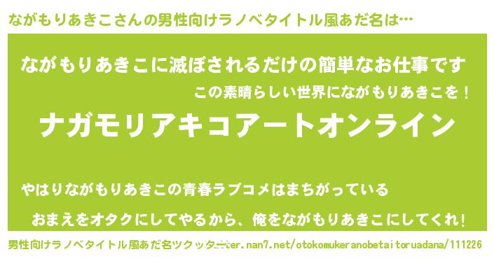 | 胡散臭い通販商品みたいなあだ名 | 『モテモテ間違いなし霊験あらたかなお札…その名も「ながもりあきこ」』 |