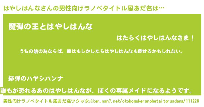 | 女子向けラノベタイトル風あだ名 | 『はやしはんなの婚約者』 |