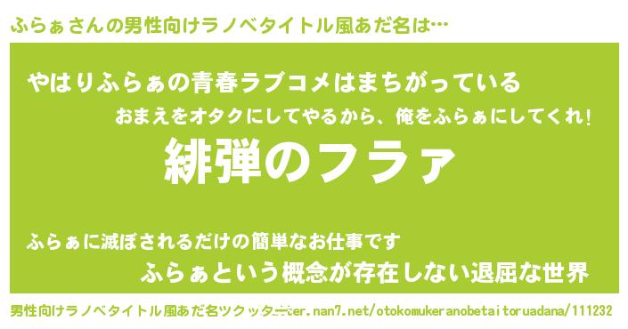 | ヒーロー風カッコイイあだ名 | 『ウルトラふらぁマン』『ネオフラァ』 |
