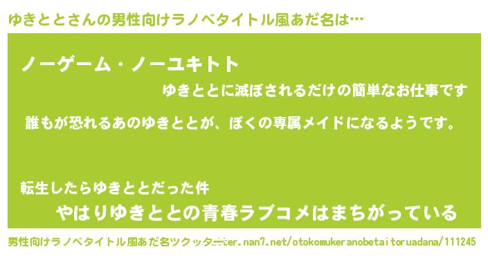 | 女子向けラノベタイトル風あだ名 | 『異世界でカフェゆきととを開店しました。』 |