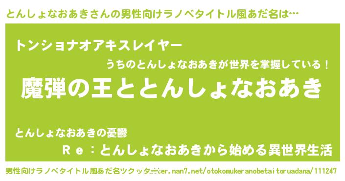 | 意味不明あだ名 | 『住所不定無職とんしょなおあき(40歳)』 |
