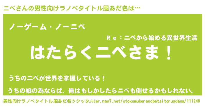 | ヒーロー風カッコイイあだ名 | 『正義の使者ニベ』『ウルトラニベマン』 |
