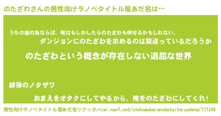 | 女子向けラノベタイトル風あだ名 | 『のたざわの契約王妃』 |