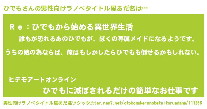 | 胡散臭い通販商品みたいなあだ名 | 『運命の人と巡り会える高級そうな壺…その名も「ひでも」』 |