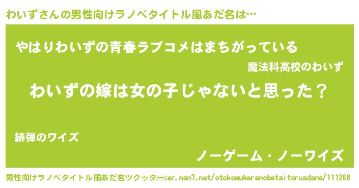 | 女子向けラノベタイトル風あだ名 | 『わいず様がみてる』『死神わいずの再婚』 |