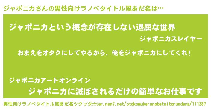 ジャポニカさんの男性向けラノベタイトル風あだ名をツクッター!