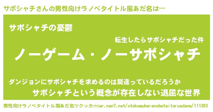 | ヘコむあだ名 | 『サボにゅー』『サボシャチ(小並感)』 |
