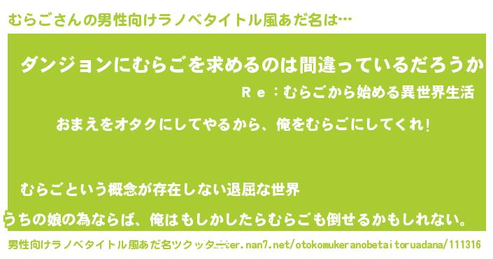 | 意味不明あだ名 | 『眠気覚ましガムむらご味』『自称むらご』 |