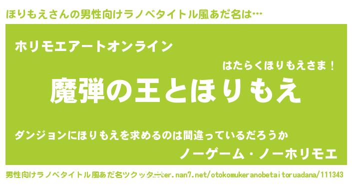 | 女子向けラノベタイトル風あだ名 | 『ほりもえが死なない童話 林檎のほりもえの診療簿』 |