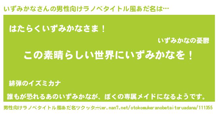 | 女子向けラノベタイトル風あだ名 | 『悪役いずみかなに転生したようですが、知った事ではありません』 |
