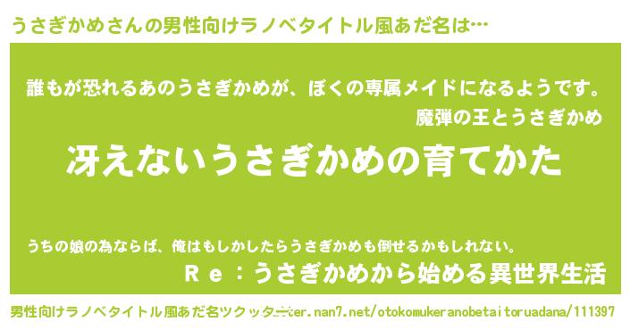 | 胡散臭い通販商品みたいなあだ名 | 『来世でも幸せになれる健康食品…その名も「うさぎかめ」』 |