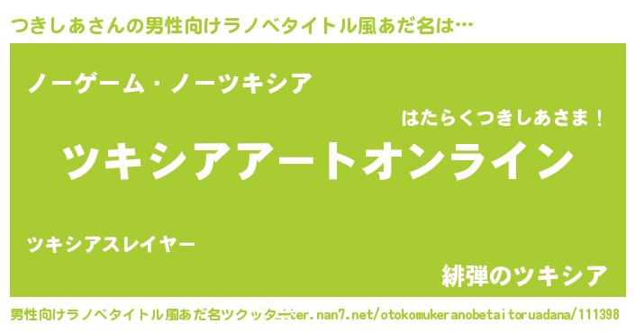 | 女子向けラノベタイトル風あだ名 | 『誰かこのつきしあを説明してください! ~契約から始まるウェディング~』 |