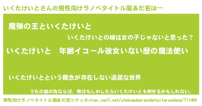 | 女子向けラノベタイトル風あだ名 | 『いくたけいとの玉の輿計画!』 |