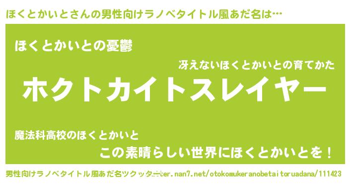 ほくとかいとさんの男性向けラノベタイトル風あだ名をツクッター!