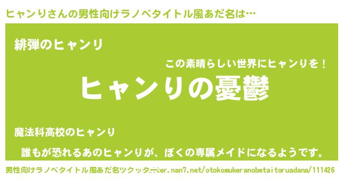 | 胡散臭い通販商品みたいなあだ名 | 『必ず成功する水晶球…その名も「ヒャンり」』 |