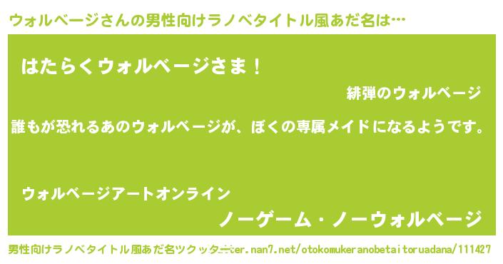 | ヘコむあだ名 | 『ウォルベージ(震え声)』『ウォふぇ~』 |