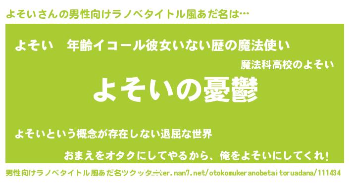 | 胡散臭い通販商品みたいなあだ名 | 『必ず成功するブレスレット…その名も「よそい」』 |