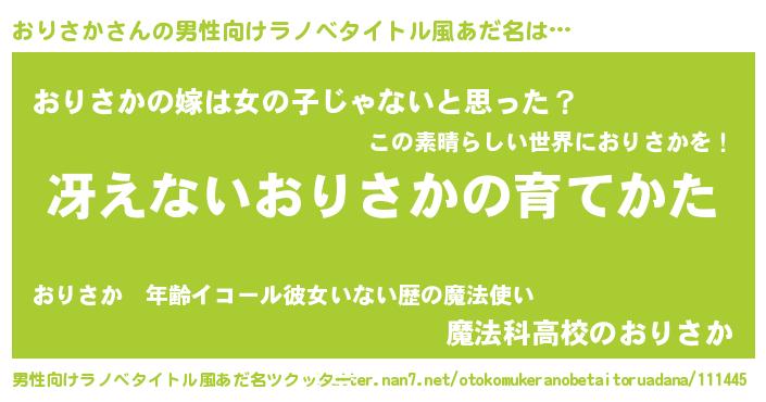| 萌えアニメ | 主人公(おりさか)のあだ名『 おり様』 |