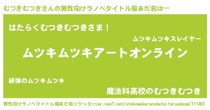 | 胡散臭い通販商品みたいなあだ名 | 『億万長者になれるブレスレット…その名も「むつきむつき」』 |