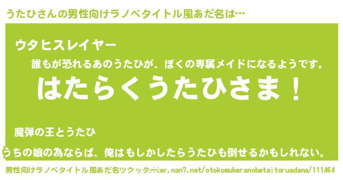 | 胡散臭い通販商品みたいなあだ名 | 『世界が平和になる高級そうな壺…その名も「うたひ」』 |
