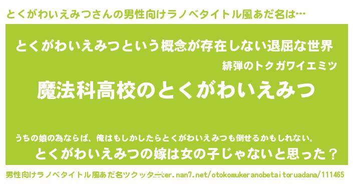 | 女子向けラノベタイトル風あだ名 | 『とくがわいえみつアンティーク』 |