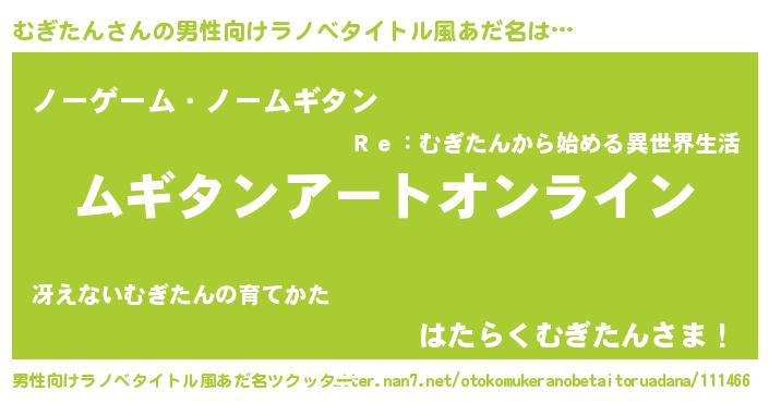 | 女子向けラノベタイトル風あだ名 | 『むぎたん姫と円卓の騎士』 |