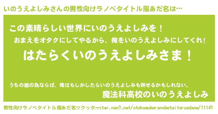 | 意味不明あだ名 | 『住所不定無職いのうえよしみ(53歳)』 |