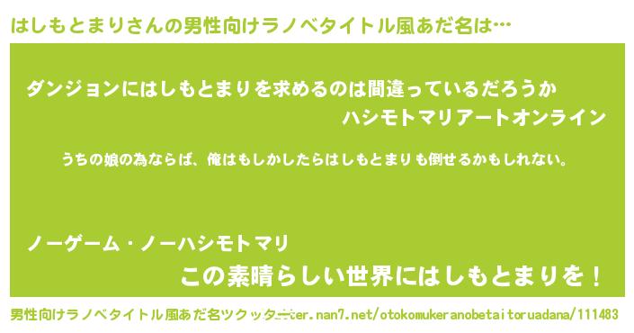 | ファンタジー風あだ名 | 『エターナルハシモトマリー』 |