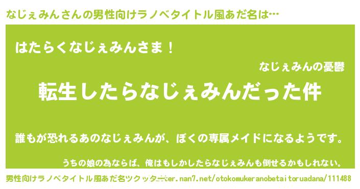 | 女子向けラノベタイトル風あだ名 | 『なじぇみんの玉の輿計画!』 |