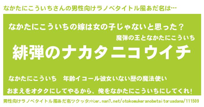| 胡散臭い通販商品みたいなあだ名 | 『信頼と実績のネックレス…その名も「なかたにこういち」』 |