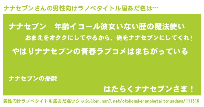 | 女子向けラノベタイトル風あだ名 | 『ナナセブンの雑貨屋さん』 |