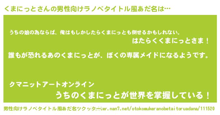 | 女子向けラノベタイトル風あだ名 | 『異世界でカフェくまにっとを開店しました。』 |