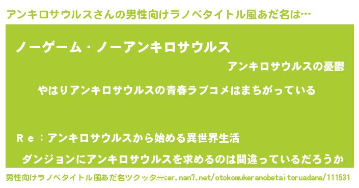 | ファンタジー風あだ名 | 『エターナルアンキロサウルスー』 |