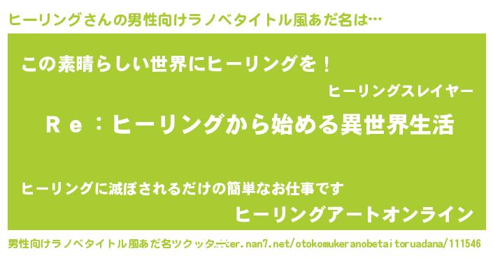 | ヒーロー風カッコイイあだ名 | 『究極戦士ヒーリング』『仮面ヒーダー』 |